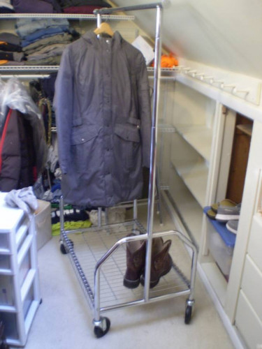 Metal CLOTHING Racks Adjustable; Expandable garment racks bar opens up to 58 in. long for added clothes storage. Sturdy casters for EASY ROLLING with bottom metal wire shelf for more storage. Expandable height (51" - 66 1/2") for longer garments. 32"L x 21"W x 51'H, expandable bar to 58"L and expandable...