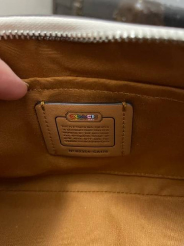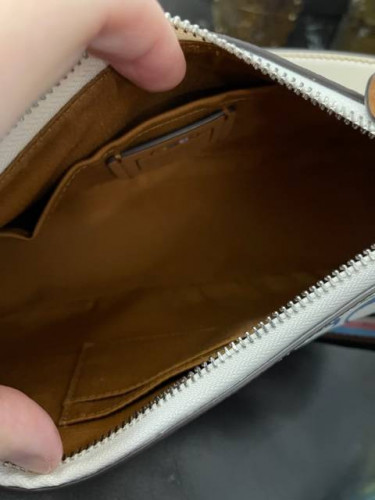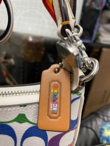 BRAND NEW!!! FEATURES: - Signature coated canvas and smooth leather - Two credit card slots - Inside multifunction pocket - Zip-top closure, fabric lining - Detachable handle with 8 1/4" drop - Detachable strap with 22 3/4" drop for shoulder or crossbody wear - 9 1/2" (L) x 6" (H) x 3" (W) - Style ...
