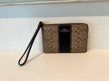 Brand new Never Used No rips/tears/stains FEATURES Two credit card slots Zip-top closure Wrist strap attached COLOR: Gold/Khaki/Black Measurements Length: 6.25" Height: 4.0" Width: 0.5" Cash Only Smoke-Free Home Pickup near Southdale