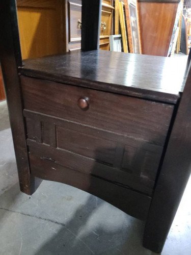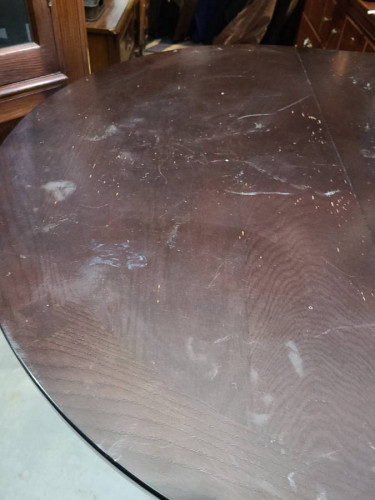 I am pleased to offer this high top Lavon dining table by Coaster Co. The color is espresso. It does have a lot of scuff marks on top so it might need to be sanded and refinished. Or you could put a nice tablecloth on it. Very sturdy and heavy piece and it has storage. I was asking $149 OBO. Reduced 50% o...