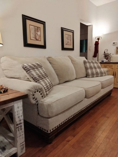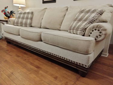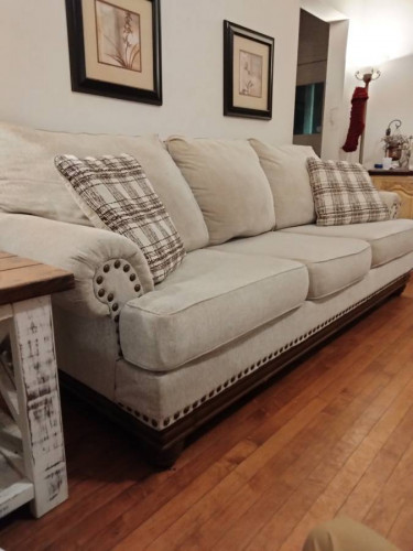 🚚Delivery Included Within 15 miles🚚 CASH ONLY! Picture of fabric is to show color and pattern only. ———————————————————— Description/Condition/Size: •Description: This is a Dove White couch with a light Gray zig zag pattern(see pic)fabric. Made by Coaster Fine Furniture and it is large. Seats ...