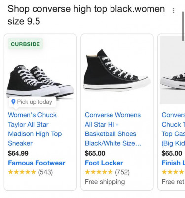 CONVERSE high top black women size 9.5 size 7.5 Mens *porch pick up* Converse Chuck Taylor All Star Madison High Top Sneaker Black ITEM DETAILS M96 Style #18744 Canvas upper in a fashion sneaker style with a round rubber toe Lace-up style Cushioned collar and tongue Classic port holes and logo...