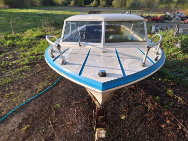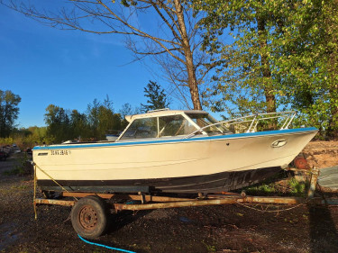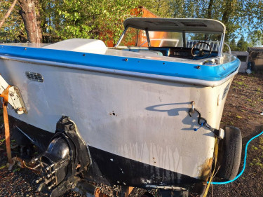 BOAT AND TRAILER. INBOARD ENGINE AND LEG ARE FOR PARTS - HENCE THE LOW PRICE $300+PST