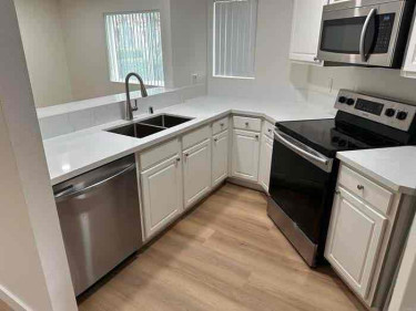 SPACIOUS ONE BEDROOM DOWNSTAIRS CONDO WITH CORNER LOCATION-GOOD SIZE PATIO-NEW LAMINATE VINYL FLOORING WITH NEW QUARTZ COUNTERS-EFFICIENT VINYL WINDOWS-FRESH PAINT-WASHER & DRYER INSIDE UNIT-PLENTY OF NATURAL LIGHT-1 SECURED UNDERGROUND ASSIGNED PARKING PLUS 1 PERMITTED SPACE AND OPEN GUEST PARKING-COMPLEX HA...