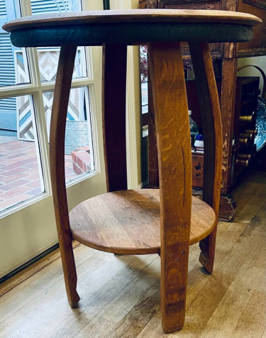 This round barrel-head table works well as an indoor side table or a centerpiece to an outdoor furniture set Unique and one of a kind Wine barrel stave legs To maintain the table and bring out the unique grain and markings, it is suggested that a light coat of Butcher Block & Cutting Board Oil ...
