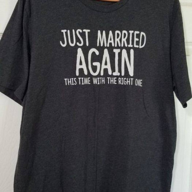 Worn twice. Unisex size XL. Roomy. Can be worn over a long sleeve top in cooler weather. Two shirts, one for bride and groom. I can ship at your cost. Cute gift for your remarrying friends!