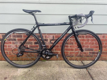 Motobecane Fantom Cross cyclocross / gravel / adventure bike. 54cm aluminum frame with carbon fork. Suggested for all riders 5’ 6” up to 5’ 9” under or at 200lbs & pending pant inseam. Standover is roughly 30.50 inches. Ready to ride. A mix of 8speed 3x8 Sora & Claris Shimano components. FSA...