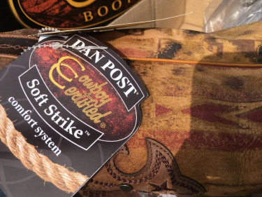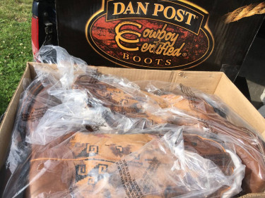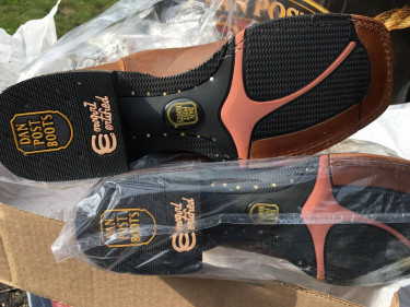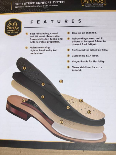 LEATHER --- *AUCTION PURCHASE, HISTORY UNKNOWN. LOOKS MAYBE TRIED ON ONCE --- 12" HEIGHT ---------- $210 AVERAGE ONLINE PRICE --------- 13" CIRCUMFERENCE LEATHER LINING REMOVABLE ANTIBACTERIAL, ANTIFUNGAL SOFT STRIKE ORTHOTIC SQUARE TOE RUBBER AND LEATHER OUTSOLE STOCKMAN HEEL Heel Heigh...