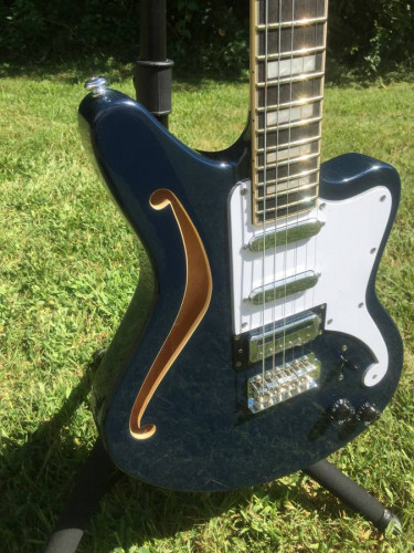 Brand new Guitar even includes the box! Beautiful Navy Blue. Specs per Dangelico The limited-edition D'Angelico Premier Bedford SH electric with tremolo is available. Featuring a sleek, modern f-hole design on the upper bout, the Bedford SH integrates a warm acoustic element into a three-pickup electroni...