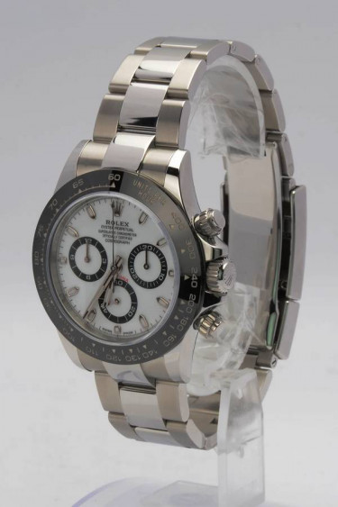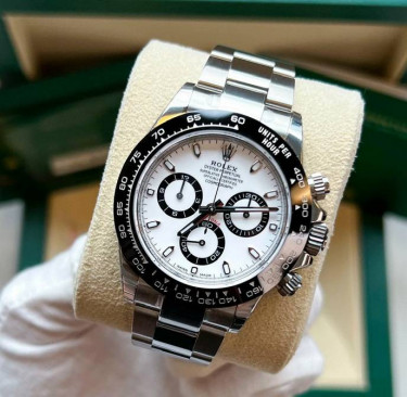 High Grade Daytona clone Case/bracelet constructed of 316L stainless steel. Bracelet links adjusted by screw. Swiss thirty one thirty five type automatic movement with hacking signal and a smooth sweeping three hundred beats per minute second hand. Mechanical self-winding. Hour dial markers with luminova lumi...