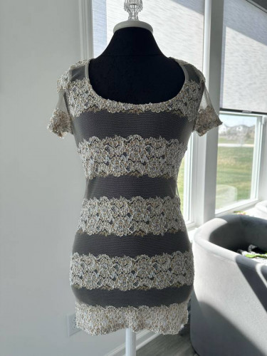 Brand: Daytrip Size: Medium White and gold lace sheer top. Purchased from The Buckle