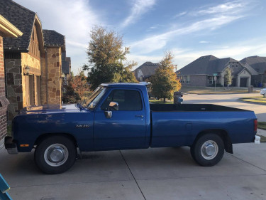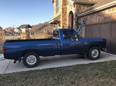 1991 Dodge D250. 174292 miles 1st Generation Cummins 5.9 Turbo Diesel Has air bags under the box. My friends dad was the original owner and he had air bags put in so he could balance his camper. Paint is peeling. (It’s the original color second paint job). Retro Fitted A/C and heating is not w...