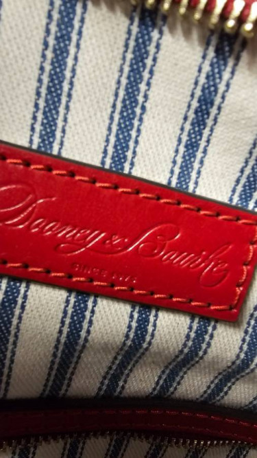 Dooney & Bourke purse! Brand new never used. D&B Camden Tote in Strawberry Red Zip pocket, key hook, slip pocket, gold tone hardware, top zips closed, lined in blue and white ticking. Comes with a dust bag. Roomy and can carry a LOT. Size approx: 14”Lx12”H x7”D Retailed for $260+ Sel...