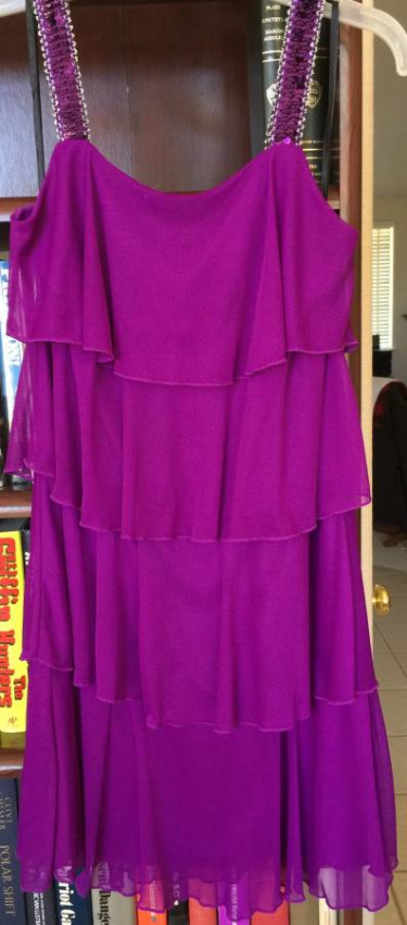 - New Enfocus Studio Cocktail Dress. Purple tiered sleeveless sequins. RN# 74299. Machine wash cold. Size 12. Made in Vietnam. $5. - New Speechless Shimmer Cocktail Dress. Milk color makes every lady looking very good! Machine wash cold. Size Large. Made in USA. $5. - Signature by Robbie Bee New Black Wrap...