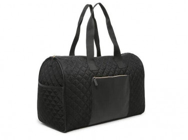 DSW QUILTED WEEKENDER Bag Luggage New Black Travel New. No issues. Pet and smoke-free home. Thank you! Fabric & faux leather Top zip closure Top handles with 8" drop Exterior pockets: 1 slip, 1 zip Fabric lining 19" L x 9" W x 12" H Imported