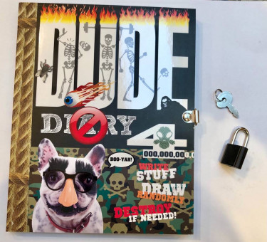 Online Description… The DUDE legend continues with the totally broriginal DUDE Diary 4. It's time for dudes to take charge, filling pages and pages with their brainiac awesomeness and securing with a lock and key. Dudes everywhere can: - mix up mutant energy bars in a science lab - show an alien aroun...