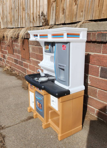 Electronic Step 2 Beige/White Play Kitchen, in excellent condition. Has a play stove top that makes boiling and sizzling noises, and the microwave keypad has electronic push buttons. Has a play refrigerator, sink, stove top, microwave, oven, and lots of pantry space! Approximate measurements: 41.25" tall, 28....