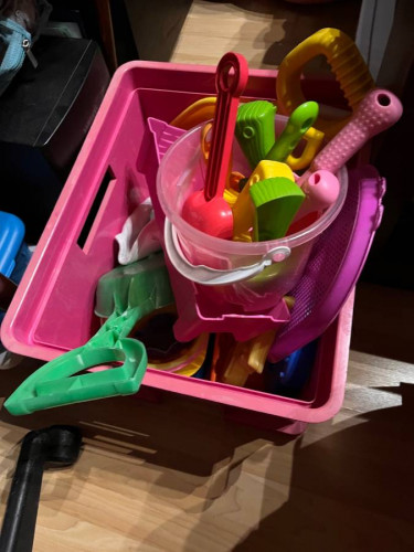 Hi! Our kids are outgrown and we are moving soon… can’t take all, all in great condition! Frozen Anna Elsa wooden castle, $45 Small bird cage, $20 Beach toys, $20 Doufit exercise bike, $100, foldable Toy organizer/shelf with 15 bins, $50 Baby Ingenuity swing, $60 with charger 2 dolls w...