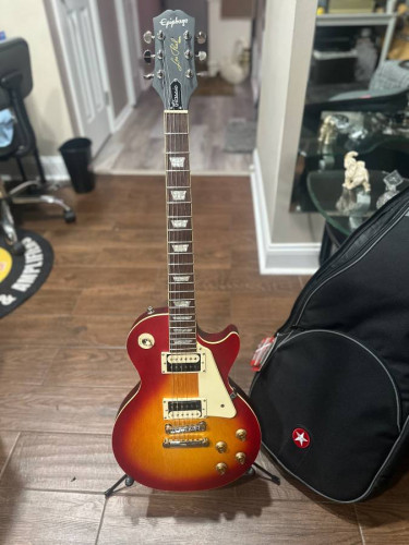 Like New Epiphone Les Paul Classic Worn Electric Guitar - Worn Heritage Cherry Sunburst. Comes with soft case. Price is FIRM AND LAST!!!!!! The Les Paul Classic Worn from Epiphone's Inspired by Gibson line gives you an affordable way to wield one of the most iconic axes ever produced, now in a gorgeous Worn...