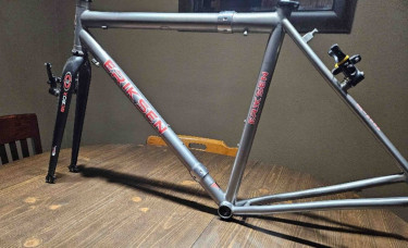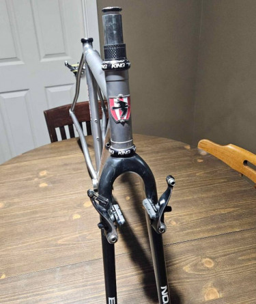Eriksen 54 cm Titanium S&S Coupled Gravel sport touring frame, Eason EC90 fork, King headset, TRP 8.4 brakes. It will also come with cable splitters and (if I have it) packing. The frame fits 700x 38s without fenders ( I haven't tried to fit fenders) and has braze on for rack and fender mounts, though y...
