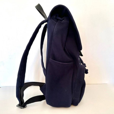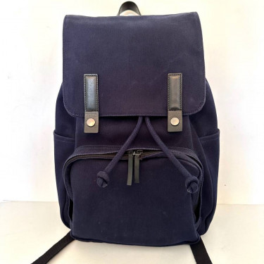 Everlane Canvas Backpack Drawstring top closure with flap that fastens with two snaps Leather details. Outside pouch with zipper closure Adjustable shoulder straps Signs of wear include: water stains on exterior and a few snags on zipper pocket. One of the zipper pull has loose threads that should be ...