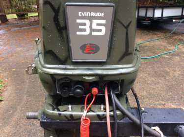 Healthy motor in very good condition, long shaft, electric start. Carburetor was just cleaned , fuel hoses replaced and new Sierra impeller was just installed. It runs perfect and it needs nothing. It can be used as a tiller motor or as remote steer motor. Comes with hot foot. If you want it as a remote steer...