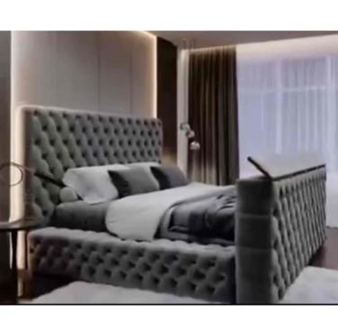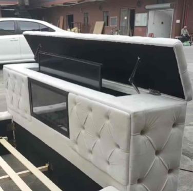 Factory Custom OEM Double Queen Size Upholstered Velvet Square Storage Bed With Build in TV