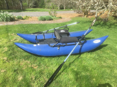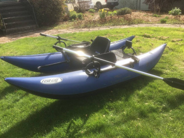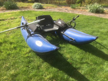An Outcast Fishcat 9-IR model in perfect condition. Lightly used and always stored indoors. 9’ double layer pontoons (built by Aire, 1000 Denier PVC base, vinyl internal airecell). Built for both lakes and rivers up to class II. Has oars, pole holder, (2) gear bags, mesh cargo deck. 375 lb. load capacity....