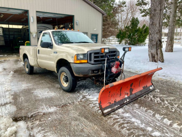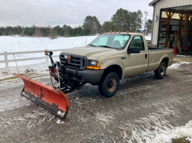 2000 Ford F250 Super Duty Plow Truck. 7 1/2 foot wide Western Unimount Straight plow with hand held cab controls. This truck runs good and plows well with a pipe bottom to help protect the lawn. We are selling it, because, we have decided to upgrade our tractor and use a push box plow. This truck always st...
