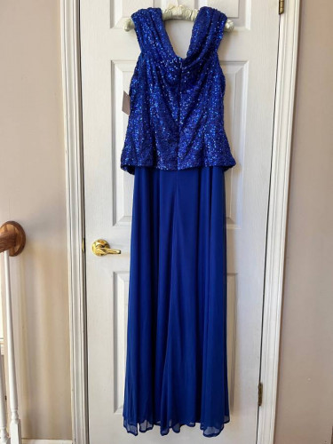 Royal blue dress. Size 16. New. Sequin top, flowing skirt.