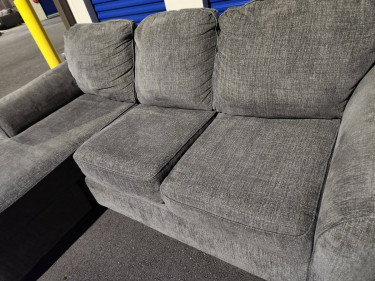 Grey 2 piece sectional with a reversible chaise it can go on either side or in the middle. Soft fabric material. Excellent condition no stains, frame & springs are solid. Only bottom cushions are removable & have zippers for easy washing. Vacuumed & clean. Currently stored at my storage unit. Pic...