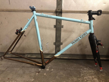 Great condition and rare steel frameset for sale! Obtained for a friend but specs / sizing wasnt clearly stated, its a bit small for them Legendary Metal Guru, Vicious Cycles the Slider - canti cyclocross Canti brake Carbon Alpha Q fork Chris King Headset - smooth bearings > mildly faded blk SP...