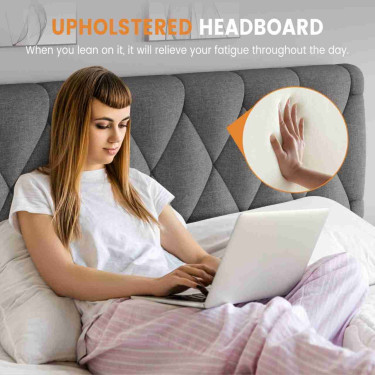【Comfortable & Stylish Design】 Enhance the aesthetic of your bedroom with our full bed frame. This platform bed frame with headboard is cushioned with high-density foam, providing a soft and breathable backrest embellished with decorative accents that bring sophistication and a modern flair. 【Integrated Stora...