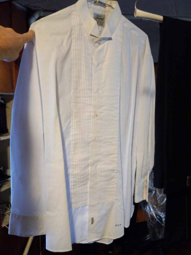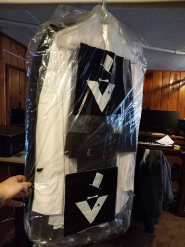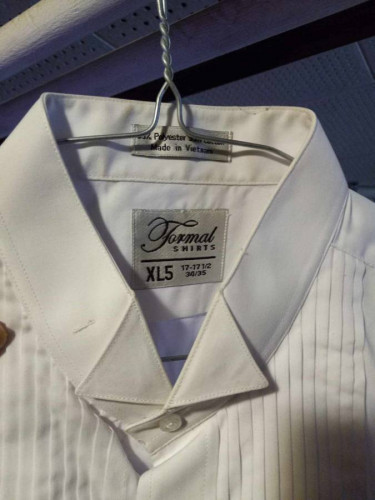 full tuxedo, jacket, pants, shirt, bow tie, cufflinks. after six brand. its been worn maybe 4 or 5 times, still just like brand new complete with the plastic garment bags it came in. I have recently lost a significant amount of weight (gym life) and it just looks kind of ridiculous on me now. its a very n...