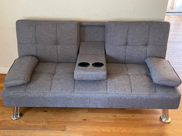 Modern Folding Futon, Reclining Sofa Bed for Apartment, Dorm w/Removable Armrests, 2 Cupholders - Gray Very nice condition. Just upgraded to something bigger soon after getting. Text for more details. Number is out of state, but I’m in FoCo