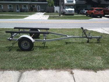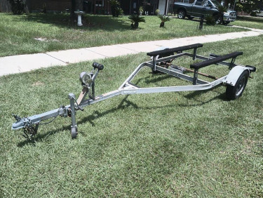 Listed here is a used galvanized boat trailer for $1000. It held a 16' jet boat and a jet ski at one time but both vessels are gone so I don't need it anymore. This is NOT a project trailer. It is ready to go. Winch/strap, jack, lights, rollers, coupler, bearings, and bunks are all in good operable order. Axl...