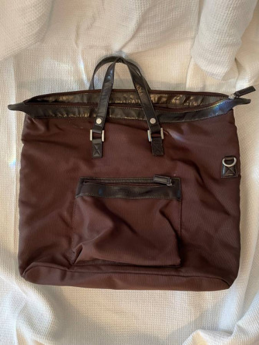 Giorgio Armani Weekend Bag / Carry-On Bag Color: Saddle Brown This is a BRAND NEW Giorgio Armani Weekender Totes Bag for men. This has never been used. This bag measures approx. 18.5" wide x 16" tall x 7" deep at the base. Detachable leather shoulder strap, double leather handles, rest of bag is nylon fab...
