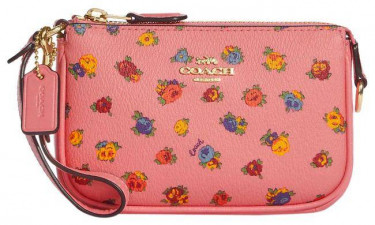 GENUINE COACH Nolita 15 Leather Wristlet - Mini Vintage Rose Print Gold/Pink Lemonade – NEW with Tags Nolita 15 With Mini Vintage Rose Print Printed coated canvas and smooth leather Two credit card slots Zip-top closure, fabric lining; attached handle with 4 1/2" drop 6" (L) x 4" (H) x 1 1/2" (W) Style No....