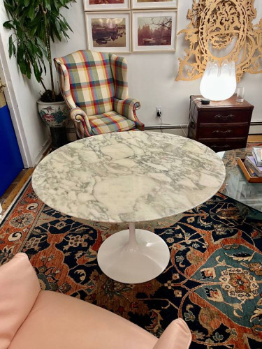 This is Eero Saarinen’s landmark dining table in its original 42” diameter size. It is an icon of modernism. The craftsmanship and materiality (arabescato marble has the most wonderful grain) of authentic knoll can not be overstated. Mine is in excellent condition, with some light, unnoticeable scratches on ...