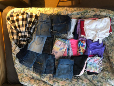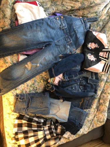 Girls Clothing all sizes 10-12. Jeans, all size 10. 8 pairs. Brands: GAP, Mudd, Justice, Cat&Jake, Wonder Nation, and 1-Pair of Old Navy Overalls, size 10-12. 2-Jackets 1-Silk 1-Denim 2-Skorts Both Justice 1-sz10, 1-sz12 4-pair Full Length Athletic Leggings 3-Athletic Tops 6-Short Sl...