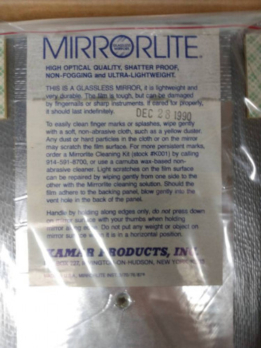 Mirrorlite 8" x 12" glassless mirrors, originally purchased from Stagestep as bounce mirrors for laser lighting but never used. From Mirrorlite - "Lightweight, mylar (glassless) stretched and vacuum-sealed over 1inch aluminum framing is distortion-free, more reflective than glass, and is non-fogging, easy to...