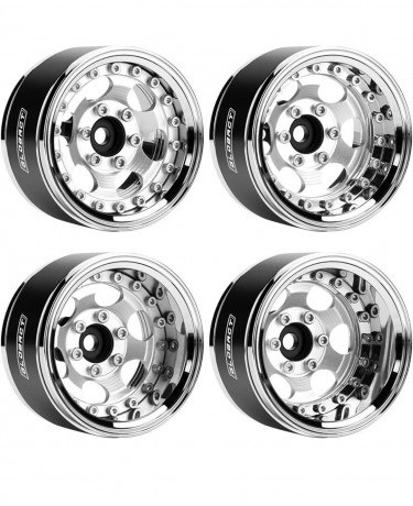 GLOBACT Aluminum 1.9 in Beadlock Wheels Adjustable Offset for 1/10 TRX4 TRX6 Axial SCX10 I II III Redcat GEN7 GEN8 RC Crawler Upgrade Accessories (4Pcs Silver)