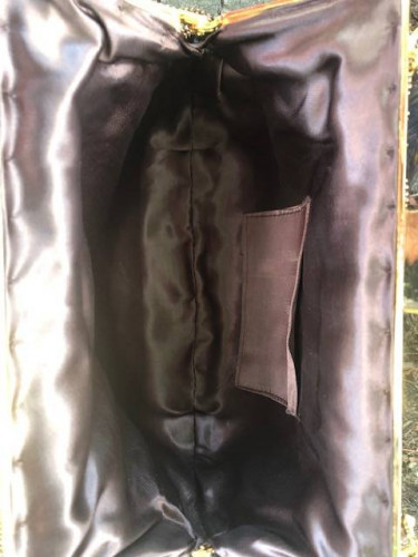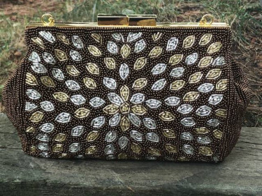 Golden Beaded Purse with Gold chain handle. Beautiful Gold and Silver Colored Beaded adorn the front and back equally. Optional use of chain as handle or inside bag to use as a purse. Handbag measures approximately 8 1/2"W X 5 1/4"H. Satin lined with small inside pocket. New Condition! $28