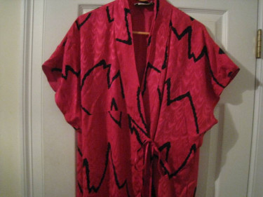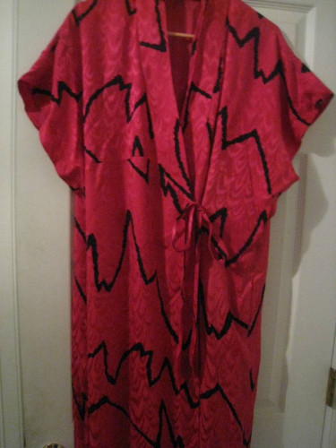 Gorgeous Vintage Saks Fifth Avenue 100% Silk Tunic Robe Beautiful enough to wear as a formal long shift dress Colors: pink and black silk exterior pattern, with a solid pink silk lining Tapered at top short sleeves Slits at bottom leg area on both sides Has inside and outer silk ties to close Full l...