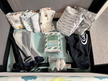 *SERIOUS INQUIRIES ONLY, PLEASE* Hi, I have for sale: A Graco Pack ‘n Play On the Go Playard with Bassinet and Blankets Graco Pack ‘n Play On the Go Playard with Bassinet-Like New, Clean and ONLY Gently Used 3 times! Design: Stratus Fashion (Navy Blue with Multicolored Clouds) Includes: Grey Wa...