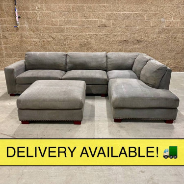 Gray L Sectional Couch Sofa w/Ottoman (DELIVERY AVAILABLE! 🚛) This is a very comfortable and roomy couch! The ottoman can even be pushed close, allowing the couch to be used as a bed. This neutral color will match any decor. It’s available for delivery now - No wait! Let me know if you would like to c...
