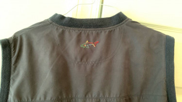 Very nice condition vest/shell. Top is a nice, subtle plaid pattern on a darker background. Zipper closure. Side “slit” pockets Exterior is nylon for wind protection and interior is a soft microfiber fleece. Great at late afternoon or dusk or daytime in spring or fall.