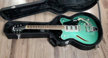 Gretsch Electromatic G5622T-CB Center Block Semi Hollowbody Guitar 2015 - 3 PU, Beautiful Georgia Green Finish Bigsby Tailpiece with Reverend Soft Touch Spring Complete features and specs are available on the Gretsch site if needed. This guitar is in beautiful shape, barely any surface wear (only a f...