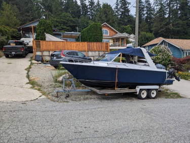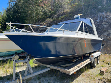 Custom Grew 24 Express Full beam aluminum hull extension with 2002 Yamaha F225 plus brand new Mercury ProKicker 15hp with remote steer and auxiliary throttle controls Heavy built fiberglass deep-v design for safe travels through the roughest conditions. Robust construction, reliable four stroke pow...
