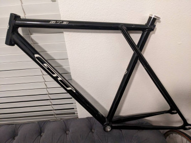 GT GTB track frame, 54cm TT length c-c, 52cm seat tube length c-c. Comes with the original seat post and collar. I would prefer in-person sales so you can see it. Make me an offer on this ol tin can.